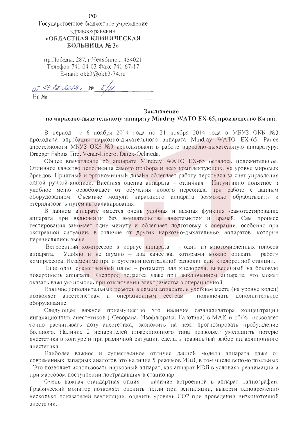 Отзыв от Областной клинической больницы №3 (МБУЗ ОКБ №3)