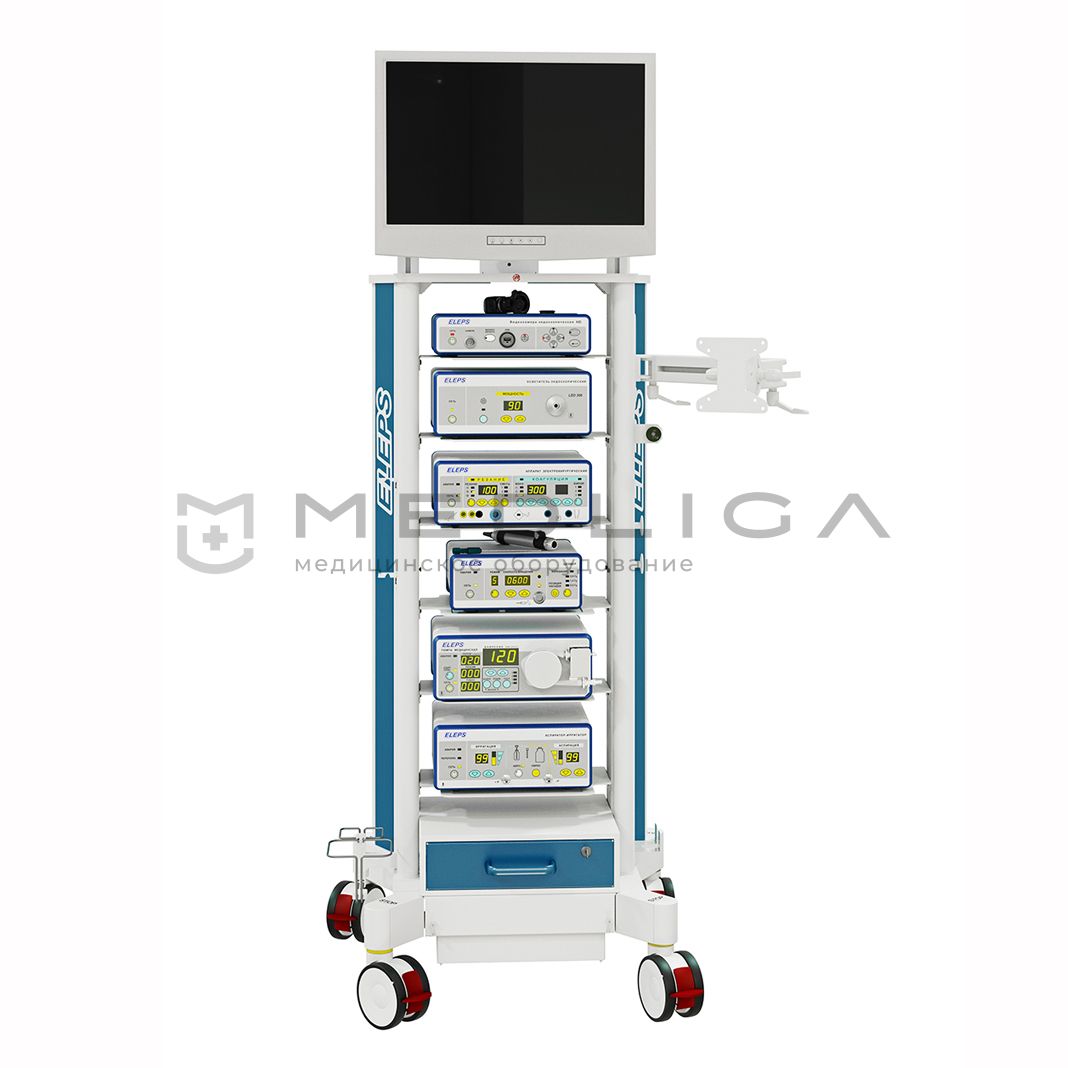 Артроскопическая стойка Элепс включает в себя инструменты для обеспечения высококачественной визуализации при проведении эндохирургической процедуры – цифровую видеокамеру, монитор, источники освещения и др. Специальная стойка обеспечивает компактное размещение всего набора оборудования и инструментария.