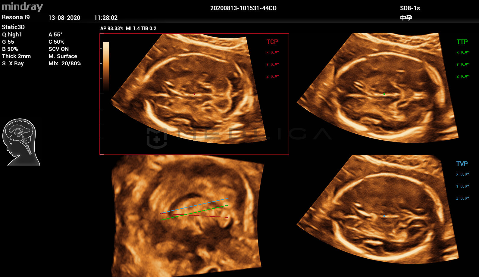 При нажатии на трехмерное изображение мозга плода незамедлительно будут получены
